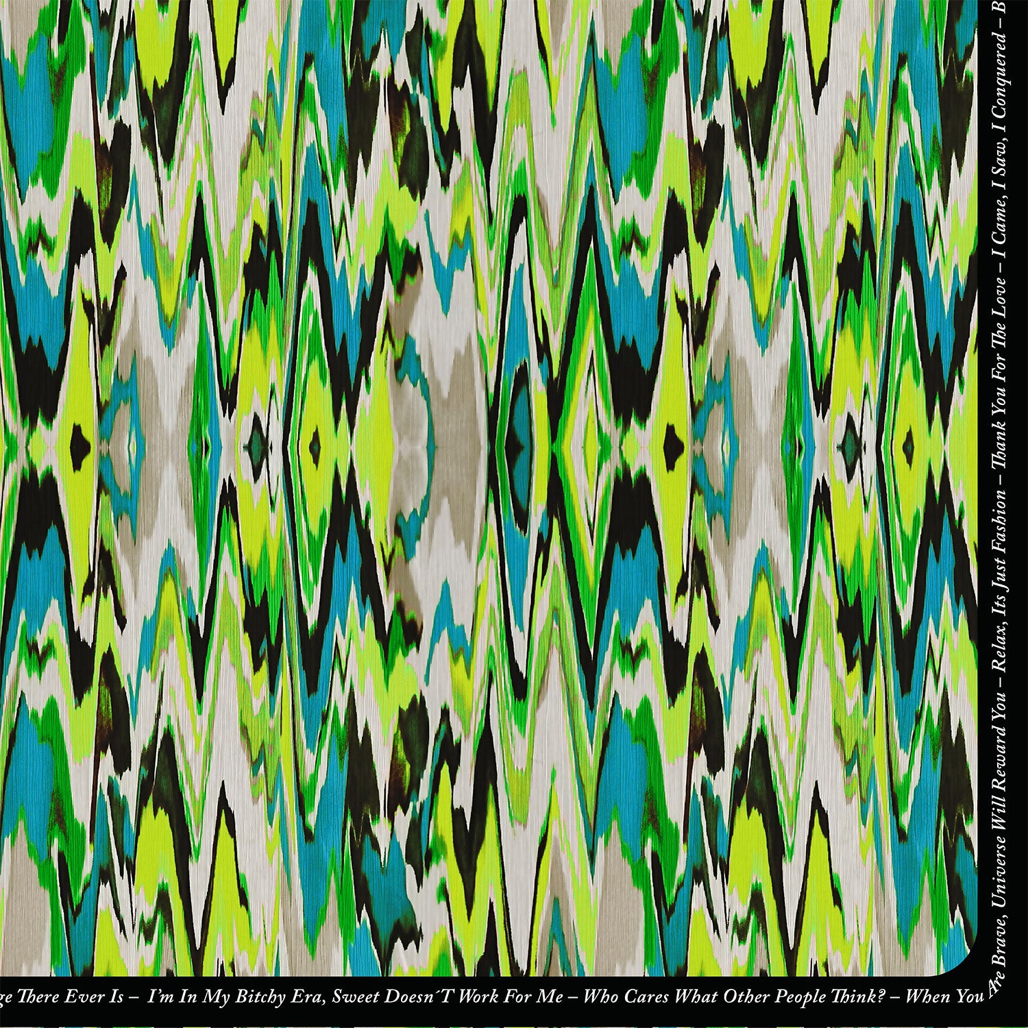Langs kanten løber empowering tekster fra Maxjenny selv, som giver designet et personligt og kunstnerisk udtryk.
