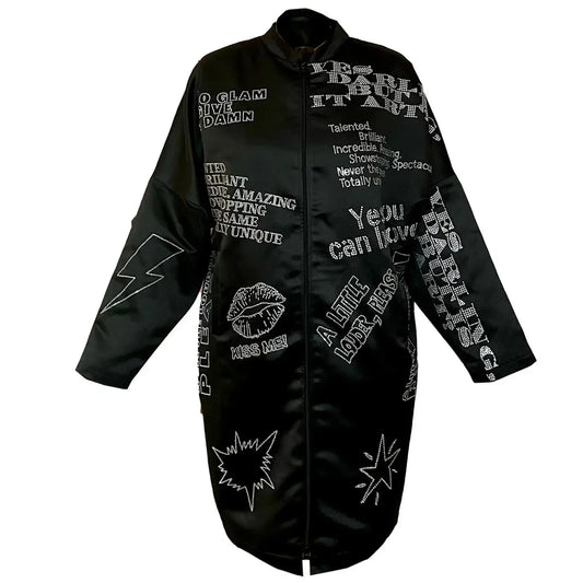 oversized Daunenmantel mit Swarovski-Kristallen in Schwarz Quadratisch