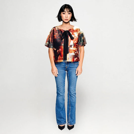 En rikt uppbyggd komposition där klassiska bildvärldar, natur och atmosfär möts i ett drömlikt men kontrollerat uttryck. Djupa, måleriska toner och historiska royal referenser skapar djup, dramatik och en lågmäld kraft — översatt till en modern silhuett som är tidlös, poetisk och självklar.