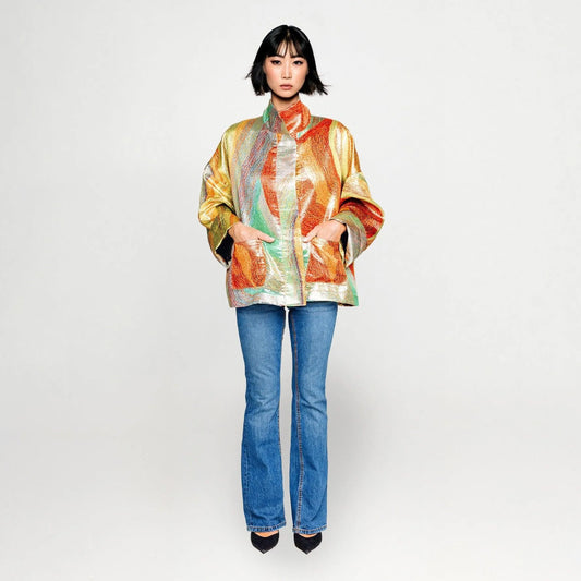 Designjackor skapade för att tillföra färg, mönster och karaktär till både vardag och mer stylade tillfällen. maxjenny!s jackor kännetecknas av djärva prints, genomarbetade silhuetter och en stark visuell identitet – plagg som lyfter helheten samtidigt som de är enkla att bära. Kollektionen rymmer statement-jackor som fungerar lika naturligt i avslappnade sammanhang som i mer uppklädda looks. Burna med denim för ett ledigt uttryck eller tillsammans med skräddade byxor för en skarpare silhuett, tillför jackorna närvaro utan att ta över. Varje plagg är en del av maxjenny!s universum av bärbar konst, där funktion möter ett distinkt designspråk.
