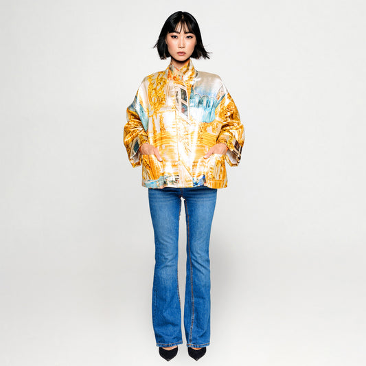 Cropped jacka med svart rosettdetalj gul sicily mönstrad
