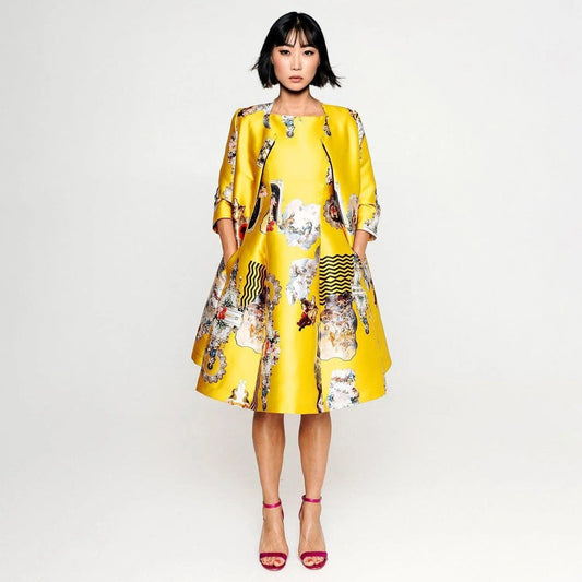 Specialbeställning – Mönstrad Midi Klänning & Festkappa | maxjenny!