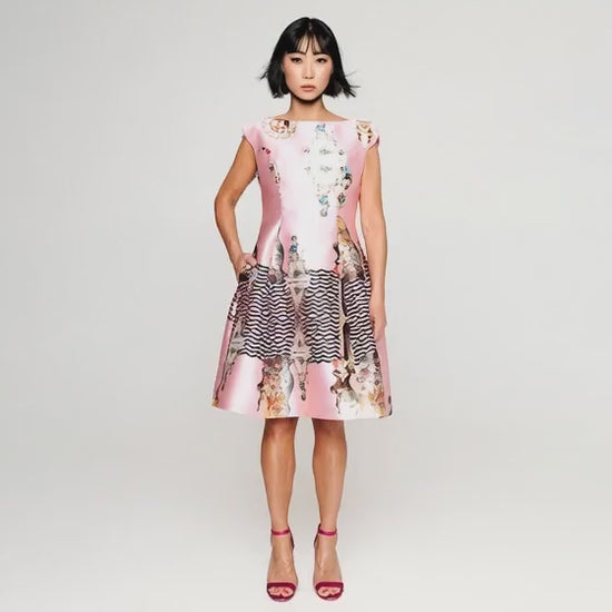 Midi klänning i Sicily ljusrosa signaturprint med skulptural silhuett och markerad midja. Klänningen har en spännande axeldel som är superfin mot dina armar. Ärmarna, midjan och den voluminösa kjolen ger den perfekta kombinationen och ger stil och klass till varje kvinna.