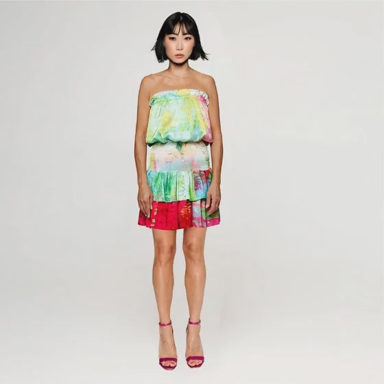 Perfekt att vara välklädd, sval och avslappnad i. Att bäras på stan, till lunchen, på utflykten-var som helst. Klänningen har en elastisk dekollage med en härlig bred smock-resår för midja/höft som gör klänningen till en kjol som fästs på toppen. Bär som en kort läcker och intensiv klänning som visar dina underbara ben, eller använd som en topp ovanför tajta preppy jeans!