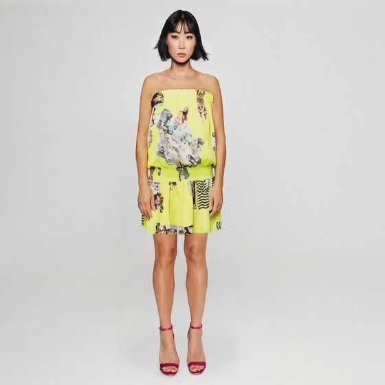 Sicily neongul mönstrad sol mini klänning