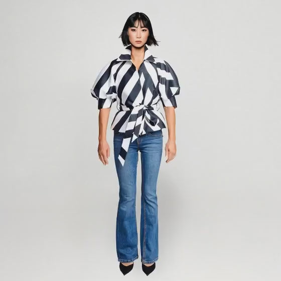Skjortjacka med puffärm – Arty rosa, lila, svartvit | maxjenny!