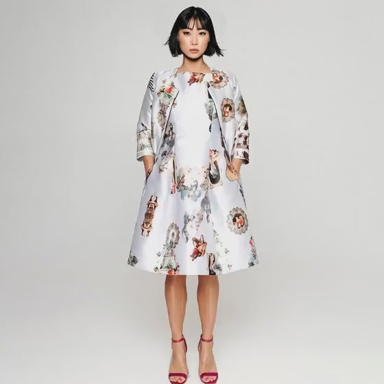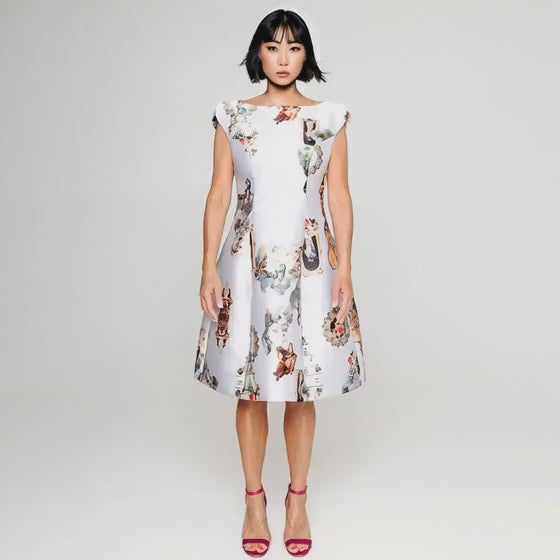 Midi klänning i Sicily smutsvit signaturprint med skulptural silhuett. Klänningen har en spännande axeldel som är superfin mot dina armar. Ärmarna, midjan och den voluminösa kjolen ger den perfekta kombinationen och ger stil och klass till varje kvinna.